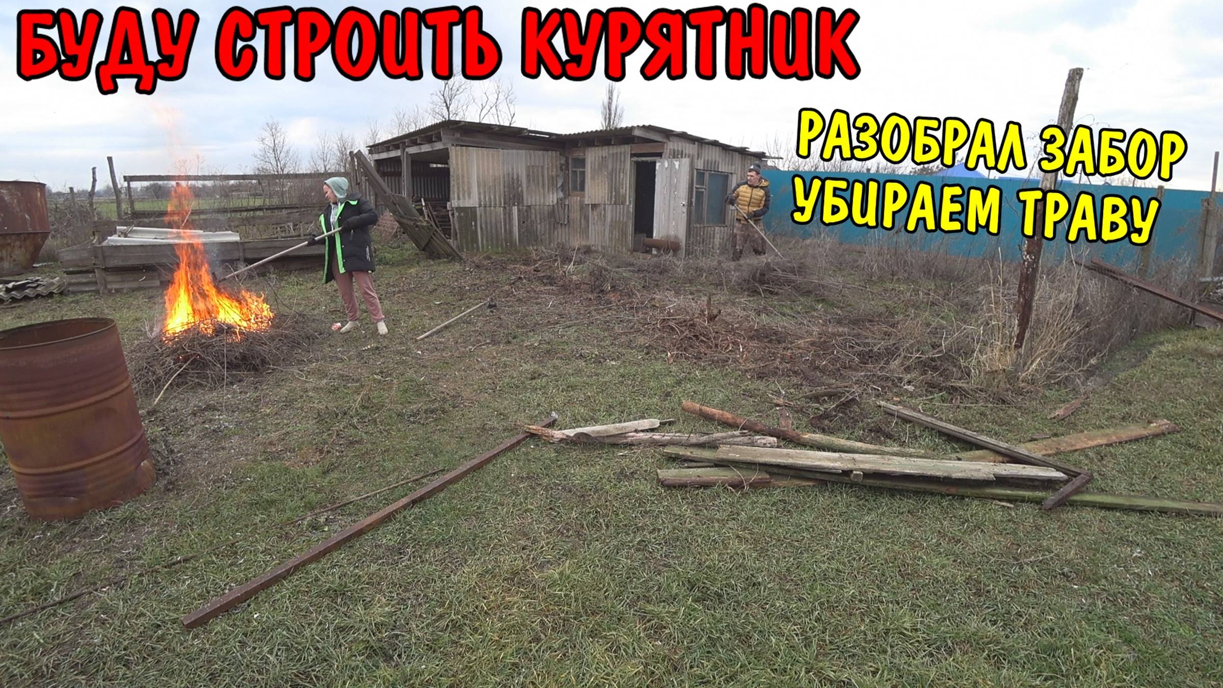 РАЗОБРАЛ СТАРЫЙ ЗАБОР / БУДУ СТРОИТЬ ЗАГОН ДЛЯ КУРЕЙ / БУДЕМ ЗАВОДИТЬ ХОЗЯЙСТВО В ДЕРЕВНЕ / УБОРКА