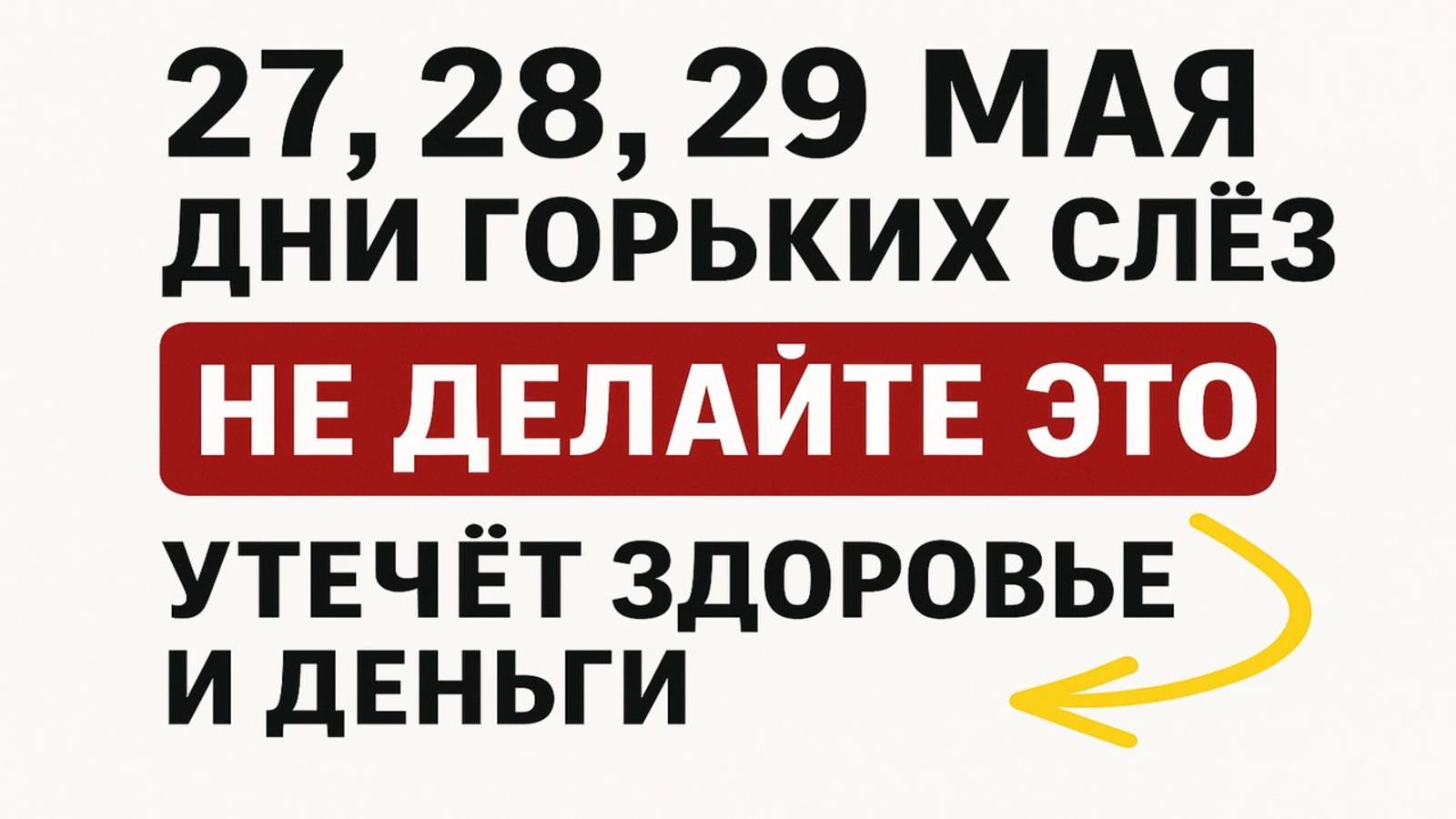 27, 28 и 29 мая — самые опасные дни весны. В эти даты начинаются финансовые потери, болезни, ссоры, утечка энергии и денег. Даже одна ошибка может навлечь беду на дом. Если Вы замечали, что в конце мая всё идёт не так — значит, Вы уже чувствовали силу этих дней горьких слёз. 📌 В этом видео: — какие народные приметы предостерегают от утечки денег и здоровья — какие ошибки в эти дни обнуляют защиту и привлекают беду — как обычная соль спасает от врагов, зависти и сглаза — что нельзя делать 27, 28 и 29 мая, чтобы не отдать своё счастье — как простой ритуал на соль у порога закрывает путь врагам — почему обещания, покупки, жалобы в эти дни опасны — какие действия вечером 29 мая решают Вашу судьбу на весь месяц 🔥 Эти трое суток — непростое время. Это момент, когда утекают деньги, рушатся дела, активизируются враги. Всё, что сказано и сделано в эти дни — имеет энергетический отклик, который бьёт по судьбе. Если Вы работаете с деньгами, занимаетесь бизнесом или финансами, или просто хотите защитить дом и кошелёк — обязательно посмотрите это видео до конца. 🎯 Вы узнаете: – как остановить энергетическую утечку – как вернуть себе удачу и защиту – как закрыть путь врагам и очистить дом от беды 📣 Не говорите 29 мая о нехватке денег — иначе утечка усилится! Вместо этого сделайте обряд на соль и произнесите слова защиты. 🔒 В конце видео — древняя практика, которая возвращает силу, здоровье и деньги, работает сразу, без магии и без риска. ✍️ Напишите в комментарии: «Я закрываю утечку и возвращаю своё» 🔔 Подписывайтесь, чтобы не пропустить ритуалы, приметы и обряды на деньги, здоровье и защиту 👍 Поставьте лайк, если чувствуете, что всё происходящее не случайно
