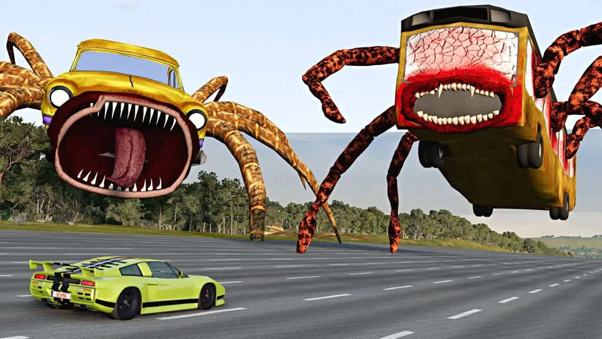 Тест автомобилей на скорость с пожирателем АВТОБУСОВ, ПОЖИРАТЕЛЕМ АВТОМОБИЛЕЙ и ГЛАВОЙ ДОМА – BeamNG.Drive