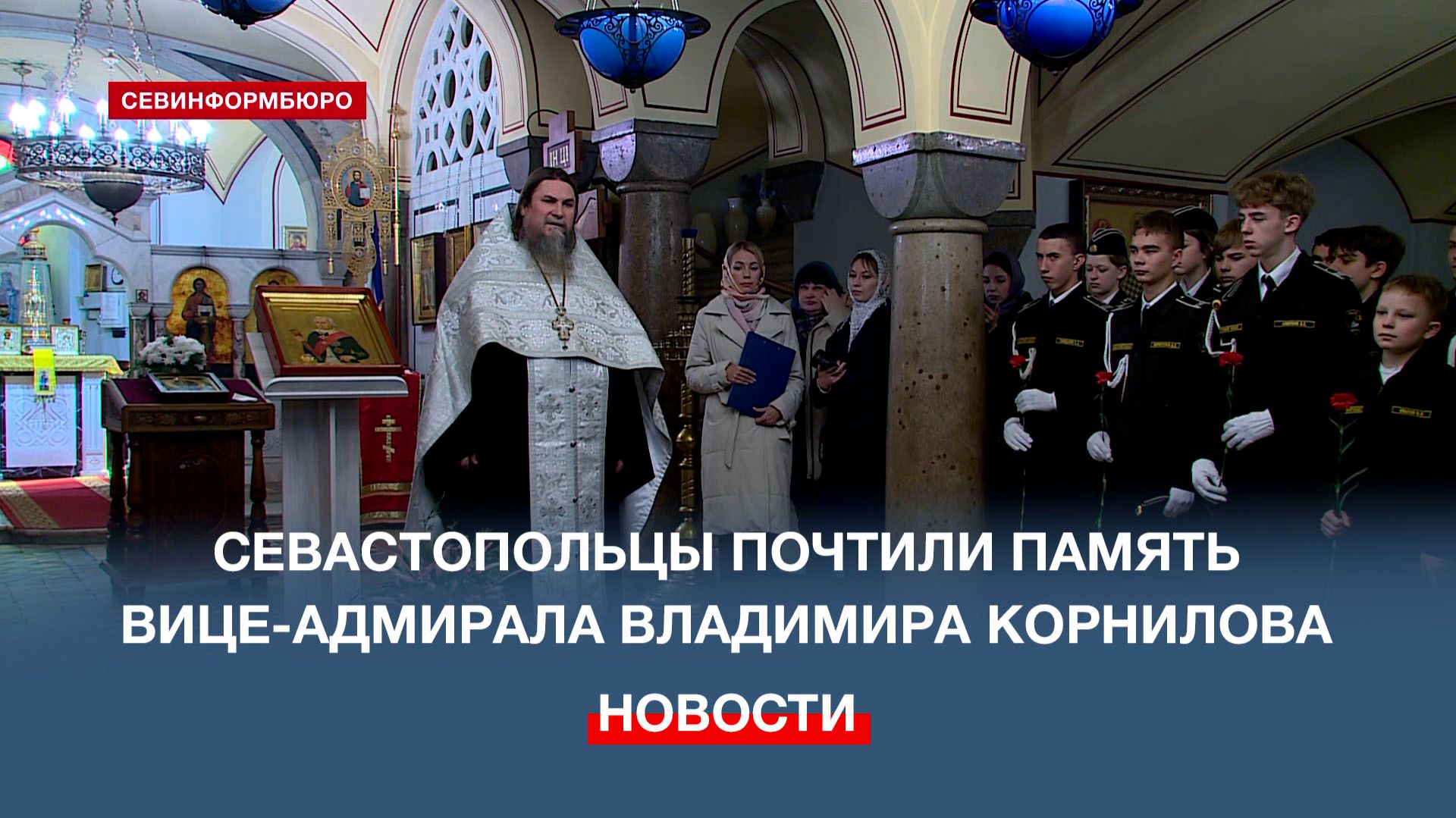 Севастопольцы почтили память вице-адмирала Владимира Алексеевича Корнилова. Во Владимирском соборе-усыпальнице адмиралов прошёл молебен, в котором приняли участие духовенство, военные и кадеты нашего города. Подписывайтесь на наш Телеграм-канал: https://t.me/nts_novosti Смотрите новости Севастополя и Крыма на сайте НТС: http://nts-tv.com В нашей группе "ВКонтакте": https://vk.com/ntssevastopol На странице в "Одноклассниках": https://ok.ru/ntssevastopol