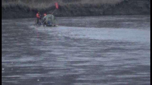 На маленьком плоту.