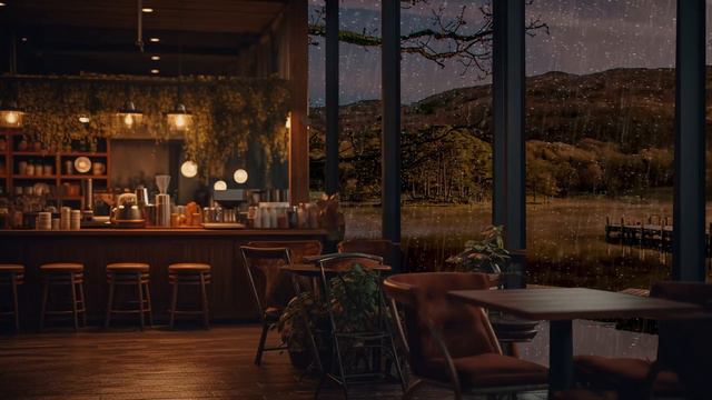 Cozy Coffee Shop Ambience | Morning Coffee Shop Ambience with Relaxing Rain Sounds For Relaxation