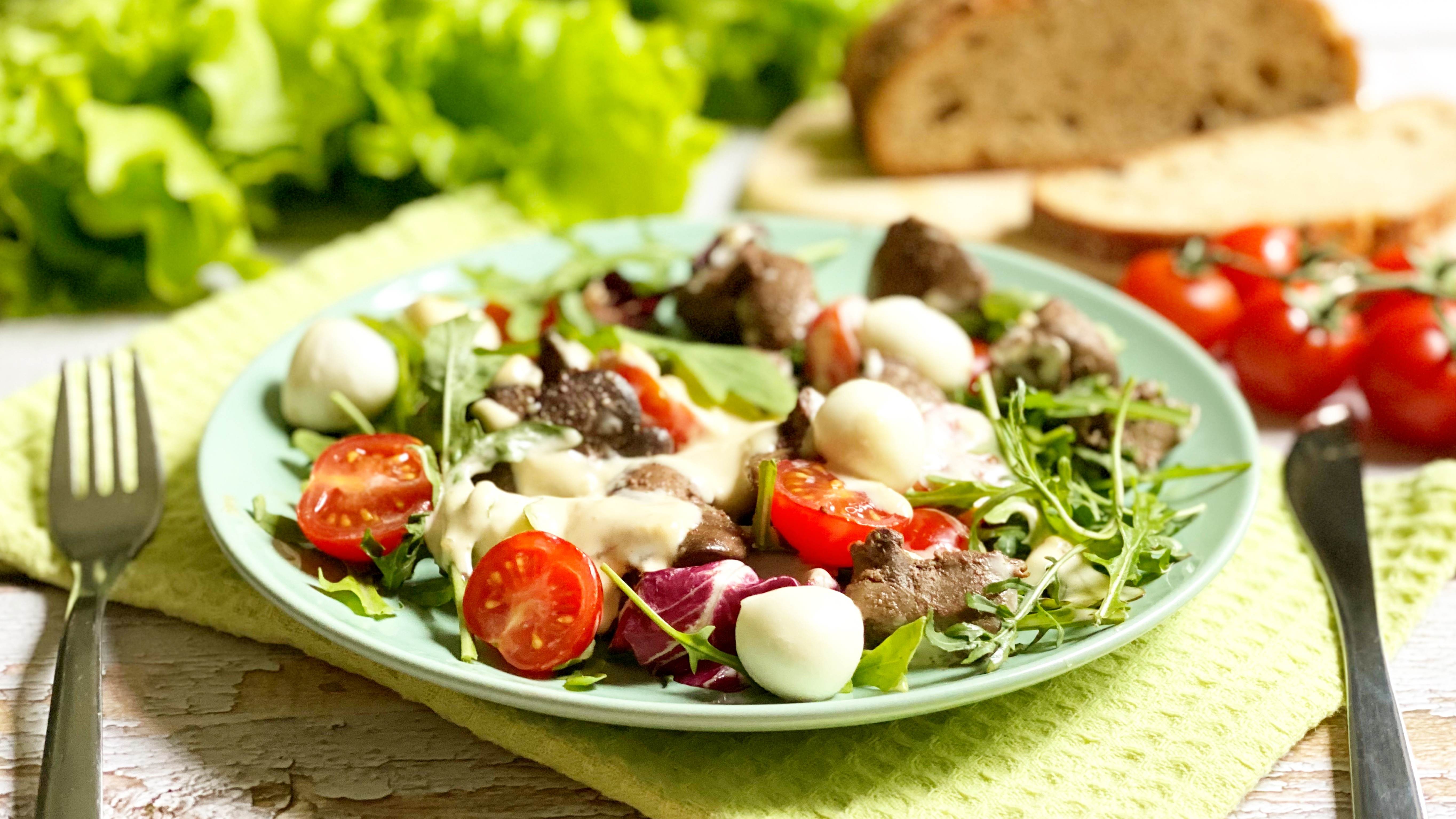 Вкусный салат из куриной печени с изысканным соусом