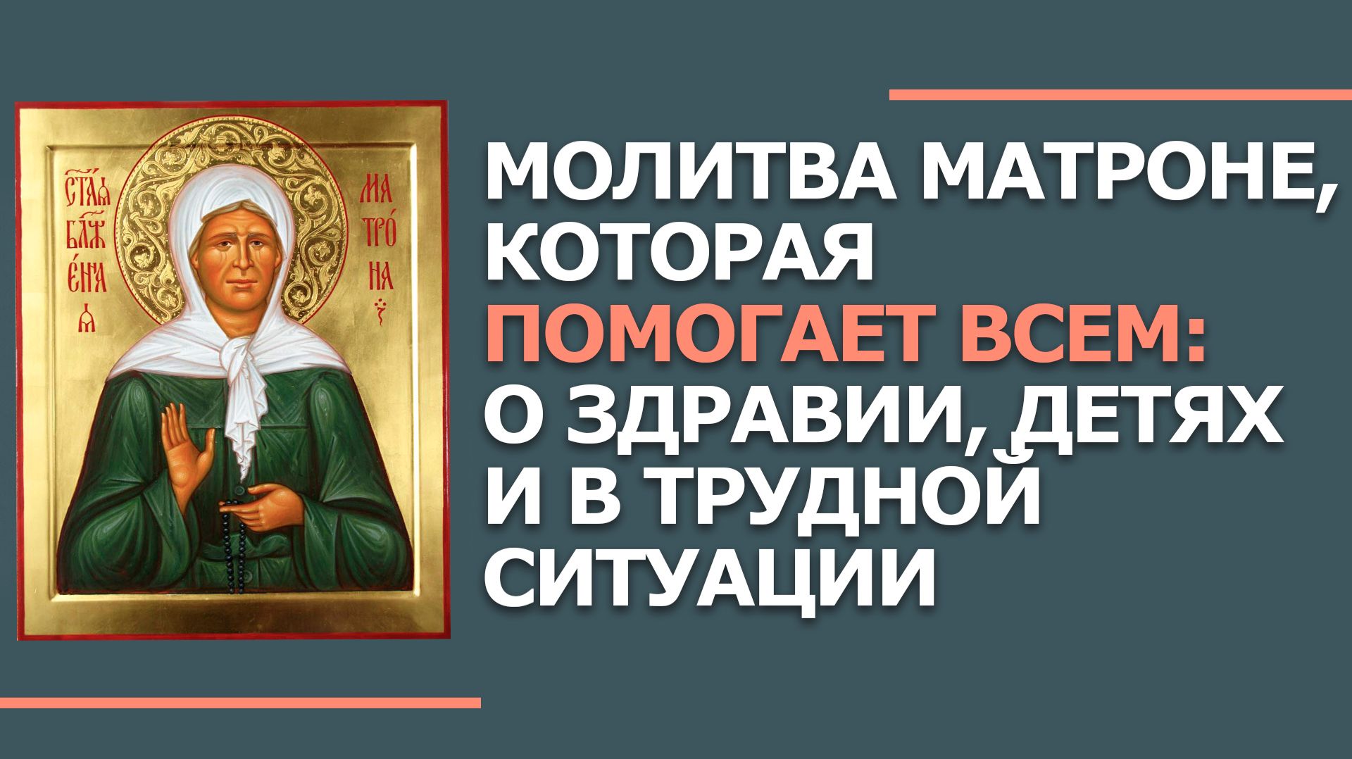 В видео вы услышите сильную молитву Матроне Московской о помощи в трудной ситуации, о здоровье и исцелении от болезней. Священная молитва святой блаженной Матроне читается на русском языке для тех, кто ищет поддержки, защиты и чудесной помощи в жизни. 🙏 Эта молитва поможет вам: Попросить о здравии и исцелении для себя и близких (о здоровье ребенка, мамы, мужа). Найти выход в трудной жизненной ситуации и получить защиту. Обрести благополучие в работе, финансах и семье. Попросить о замужестве, беременности и детях. Слушать и читать молитву Матроне Московской можно ежедневно. Вера и искреннее обращение к святой угоднице творят чудеса. Включите видео, молитесь вместе с нами и зажигайте свечу в своем сердце. ✅ Подпишитесь на канал, чтобы не пропустить новые православные молитвы и акафисты. Ставьте лайк 👍, если это видео принесло вам утешение, и делитесь им с близкими для помощи и поддержки. #молитваматроне #матронамосковская #молитваопомощи #молитваоздоровье #православие #сильнаямолитва #акафистматроне #молитваслушать #исцеление #вера молитва матроне, молитва матроне московской, молитва матроне о помощи, сильная молитва матроне, молитва матроне о здоровье, молитва матроне московской о помощи, молитва об исцелении, молитва матроне читать, молитва матроне слушать, молитва на русском языке, акафист матроне, молитва о здравии, молитва в трудной ситуации, молитва о детях, молитва о работе, матрона московская, православные молитвы, молитва от болезней, молитва о замужестве, молитва о беременности, блаженная матрона, текст молитвы, молитва на все случаи жизни