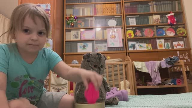 Ева предложила Басику поиграть с птичкой