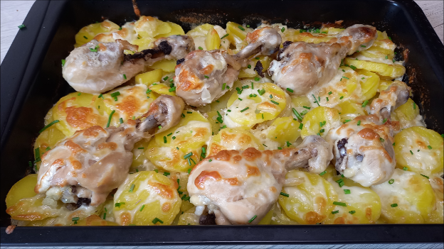 Картофель с курицей в духовке Рецепт голень куриная 6 шт. картофель 1 кг. лук репчатый 1 шт. сметана 3 ст.л. (2+1) соль по вкусу сыр 100 г по желанию зеленый лук растительное масло для смазки формы форма 25/33 #курица #картошка #картофельскурицей #вкусныйобед #вкусныйужин #простойрецепт #курицазапеченная #вдуховке #курицарецепт #обедрецепт #ужинрецепт #еда #кулинария #домашниерецепты