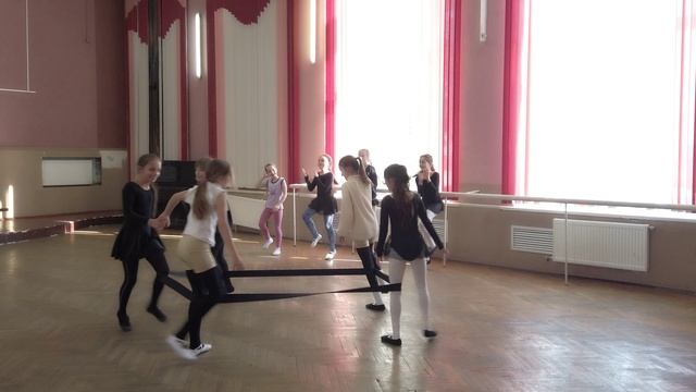 Дети ходят по кругу и когда музыка замолкает выпрыгивают из резинки. Музыку можно скачать по ссылке. https://t.me/Dance_kidsss