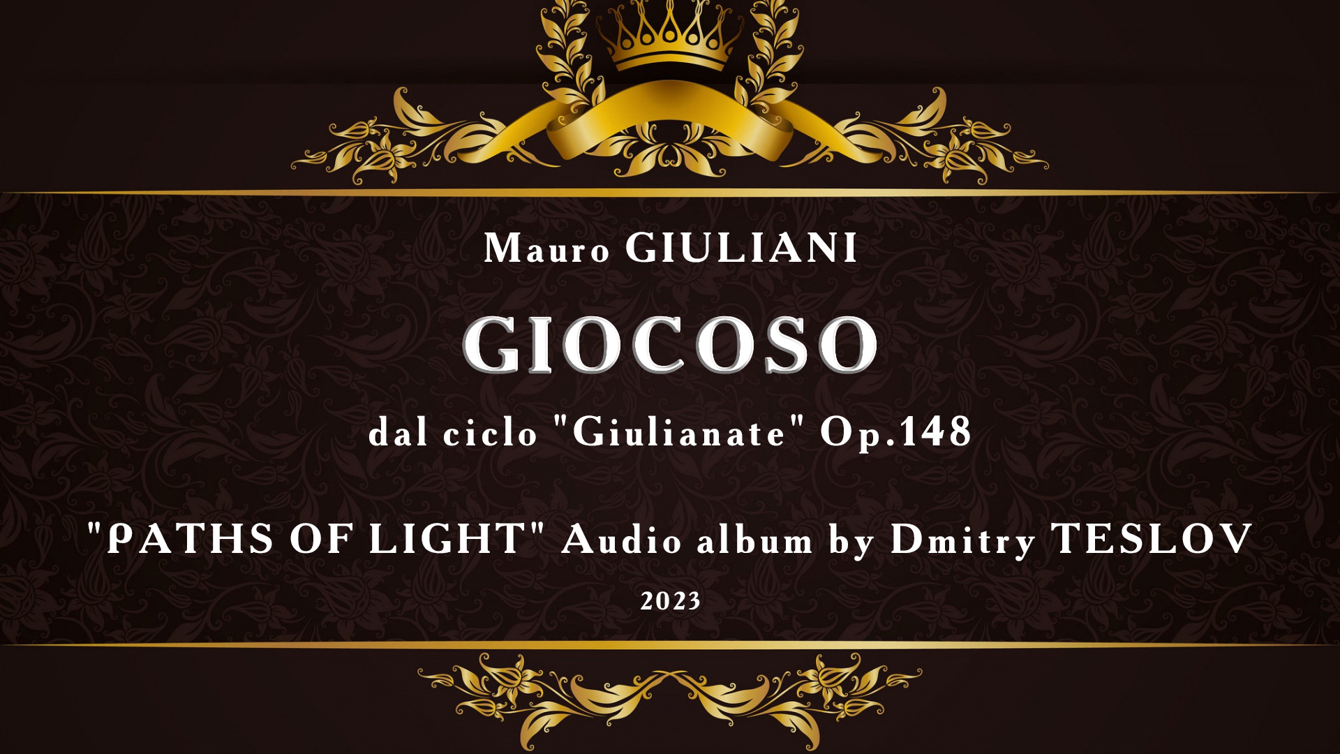 Мауро Джулиани. "Джокозо" из цикла «Джулианата». Восемь сентиментальных пьес. Опус 148. Аудиоальбом Дмитрия Теслова "Пути света" (2023 г.). Подробно, скачать аудиоальбом: http://teslov-music.ru/teslov-audio_paths_of_light_2023.htm