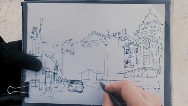 Иркутск Вокзал Городская зарисовка Акварель по эскизу на пленэре Рисую и рассказываю Мастер-класс