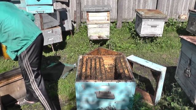 Завершение эксперимента.Снятие второго корпуса.Взяли с этого нуклеуса(июнь) более 25 кг.меда (на стационарной пасеке).Результат отличный. ЭКСПЕРИМЕНТ УДАЛСЯ.
