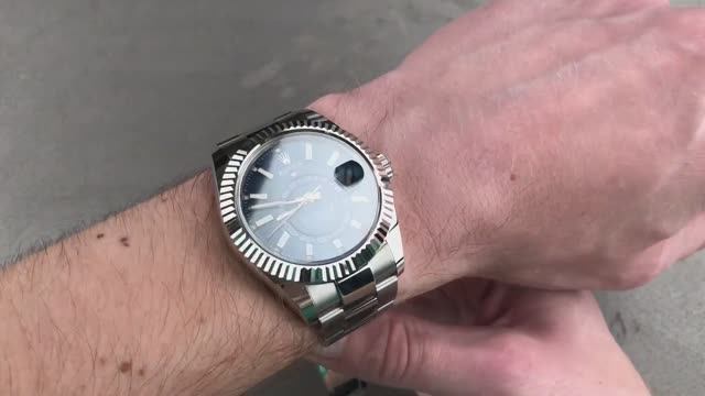 *перевести видео можно в Яндекс браузере Rolex Oyster Perpetual Sky-Dweller 326934 выполнен в корпусе диаметром 42 мм из нержавеющей стали и белого золота с синим циферблатом и браслетом Oyster из нержавеющей стали. Характеристики этих часов Rolex Sky-Dweller включают в себя часы, минуты, секунды, дату, месяц, годовой календарь и время по Гринвичу. Толщина этих часов Rolex также составляет 13,8 мм, а расстояние от выступа до выступа составляет 50,4 мм. Для получения более подробной информации ознакомьтесь с полным обзором Rolex Sky-Dweller