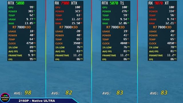 RX 9070 XT vs RTX 5080 vs RTX 5070 Ti vs RX 7900 XTX Тест в 10 играх | Ryezn 7-7800X3D