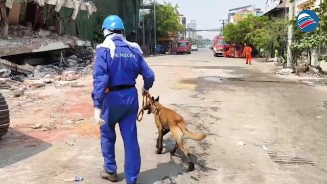 Собака — лучший друг спасателя: кинологи МЧС России обследуют завалы в Мандалае