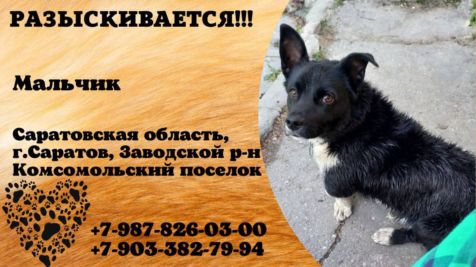 Саратовская Саратов Пропала собака Потерялась собака, заводской район, комсомольский посёлок, частный сектор. Дворняга, криволапка, хвостик подломан с рождения. С коричневым кожаным ошейником и карабинчиком. По размеру маленький, возраст год и 3 мес. Если найдете, 79878260300, 79033827994, телеграмм @nerklukss, вк Полина Любимская Инфо https://vk.com/wall-198815410_152634 Автор https://vk.com/nerklukss