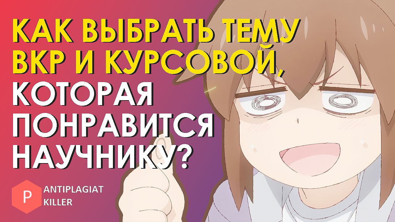 Мы всегда говорим, что важно выбрать актуальную тему для исследования, чтобы в ней были новизна и проблема. Но далеко не только от этого зависит качественный выбор вопроса. Очень часто нам приходится опираться не только на своё "хочу", но и на предпочтения научного руководителя и комиссии. В видео обсудим, как выбрать грамотную тему для курсовой и ВКР, чтобы все остались довольны Наш сайт - https://killer-antiplagiat.ru/ ПРОМОКОД НА СКИДКУ 20% - AKyou Почта - support@antiplagiat-killer.ru Группа ВКонтакте - https://vk.com/kakobmanut_antiplagiat Телеграмм канал - https://t.me/antiplagiat_killer Текстовая статья о том, как повысить уникальность текста - https://killer-antiplagiat.ru/blog/kak-povysit-originalnost-teksta Текстовая статья о том, как проверить текст на уникальность бесплатно - https://killer-antiplagiat.ru/blog/antiplagiat-besplatno НАШИ УСЛУГИ: Проверить уникальность текста, в том числе через Антиплагиат.ВУЗ - https://killer-antiplagiat.ru/proverit-unikalnost-teksta-onlajn Повысить уникальность текста - https://killer-antiplagiat.ru/povysit-unikalnost-teksta-onlajn Заказать ручной рерайт текста - https://killer-antiplagiat.ru/ruchnoj-rerajt-teksta-zakazat Оформление научной работы по ГОСТу - https://killer-antiplagiat.ru/oformit-rabotu-po-gostu-onlajn-besplatno НАШИ БЕСПЛАТНЫЕ УСЛУГИ: Бесплатное повышение уникальности текста - https://killer-antiplagiat.ru/povysit-unikalnost-teksta-onlajn-besplatno Синонимайзер текста - https://killer-antiplagiat.ru/synonimizer Переписать текст с помощью искусственного интеллекта - https://killer-antiplagiat.ru/perepisat-perefrazirovat-tekst-nejrosetyu-ai-iskustvennyj-intellekt-besplatno-onlajn