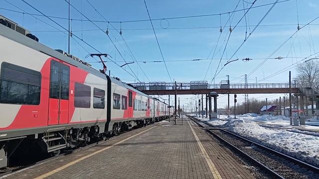 Электропоезд ЭС1П-020 «Ласточка» с скорым пригородным поездом №7906 Магнитогорск Пассажирский - Челябинск Главный прибывает на 3-й путь Ст. Троицк, Челябинская обл., ЮУЖД Дата: 09.03.2024