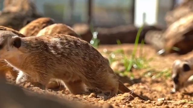 Сурикаты вышли в уличный вольер после зимы