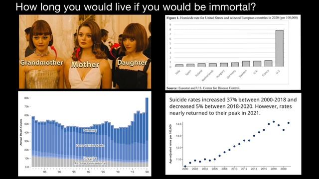 How long would you live if you were immortal? For many people, such a question does not make sense - you would answer that in this case you would live forever... However, according to the US Bureau of Statistics, you are wrong.. Every year per 100,000 US residents there are about 8 murders, 14 suicides, and 24 deaths from other accidental causes... Total If we had 100,000 immortals in the first year we would have lost 47 immortals (let's round up to 50 for easy counting) the very first year.... This means that in 100 years we would have lost 5000 and in 1000 years 50,0000... or half! And as it is not difficult to guess, immortal people could live for a maximum of 2000 years. And you should also be very lucky - only one person out of 100,000 would live to that age... the rest would die much earlier... #Immortality #EternalLife #LifeAfterDeath #Longevity #Mortality #HumanImmortality #DeathStatistics #BureauOfStatistics #LifeExpectancy #DeathRate #ImmortalityDebate #LivingForever #LifeandDeath #InfiniteLife #ImmortalityDiscussion #LuckyImmortal #LifeChoices #DeathByNumbers #EternalExistence #LongLife https://www.youtube.com/watch?v=JGeXJxO_NeU