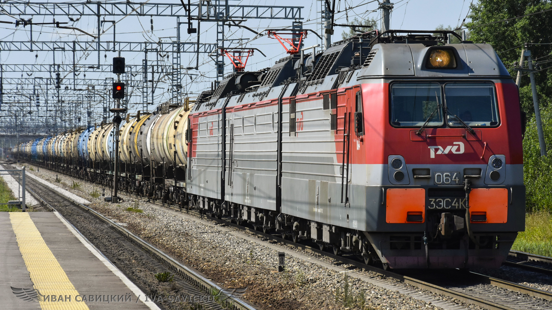 Поезд с электровозом 3ЭС4К-064 проносится в сторону Назии
