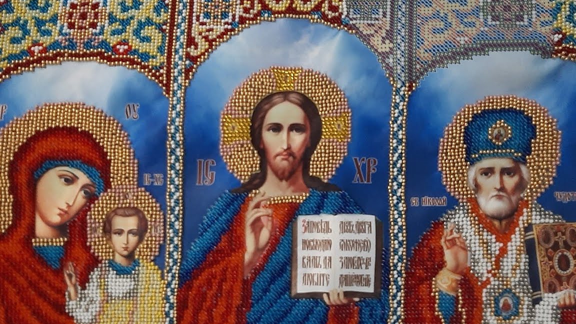 Воспоминания 2021г. Вышиваю ИКОНУ. Аня учит уроки.