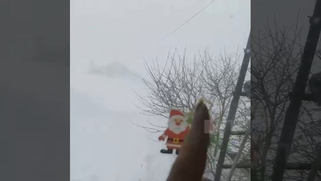 Вот дом напротив мы его не можем уже видеть. Сугроб действительно высокий