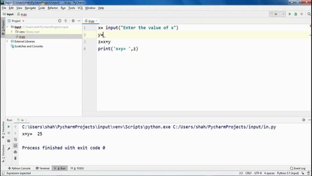 The easiest way to start Python for Beginners | Hindi | Urdu. Watch all the videos if you want to learn python. In this video, I have taught how to take Input in Python. Learn how to install Pycharm IDE, Link: https://www.youtube.com/watch?v=CR4QwqcbqcU Strings can easily be concatenated using concatenation. print() function is used for output in console window. Input() function is used to take an input from user. This input is a string. You have to convert it into a integer before using Arithmetic operation, Logical operation, Comparison Operator and Bitwise operator.