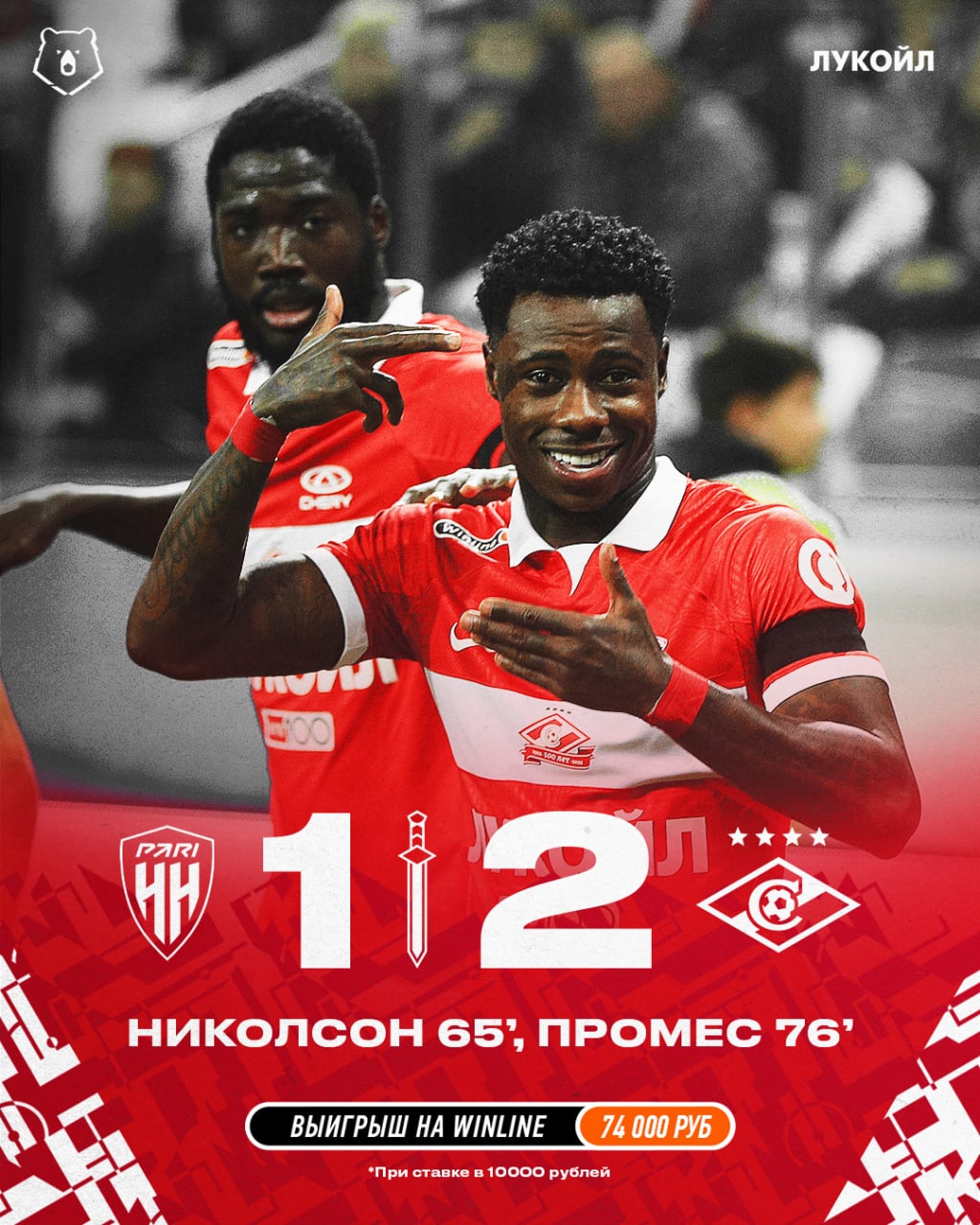 «Спартак» перевернул игру в Нижем Новгороде и одержал волевую победу над «Пари НН», дважды забив после 65-й минуты ?⚪️ #футбол