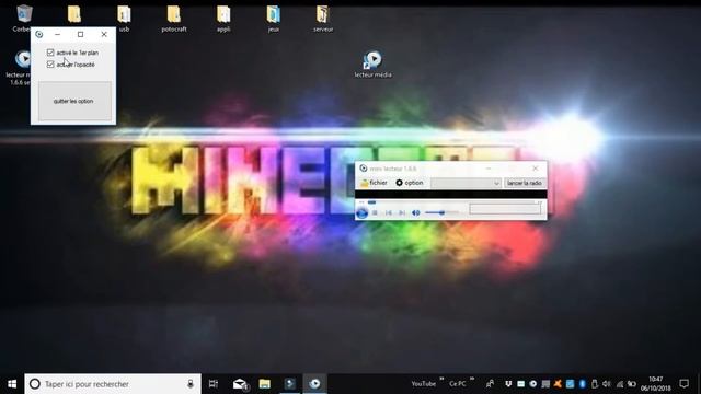 hey tous le monde aujourd'hui on se retrouve pour une nouvelle vidéo sur mon pc pour un petit tuto comment installer mon logiciel que que j'ai créé qui se nomme lecture Média un lecteur qui permet de lire des fichiers multimédia de télécharger des vidéos YouTube et tout ça donc je vous montre comment l'installer voilà n'hésitez pas à mettre un like et à commenter à partager cette vidéo et à vous abonner ça me ferait très plaisir bye téléchargement: https://mega.nz/#!R2ZHDQCR!ebrKaG0hs0iXkw_Jyl_9fQwRWK3etDzVJJdP6OvSnAo
