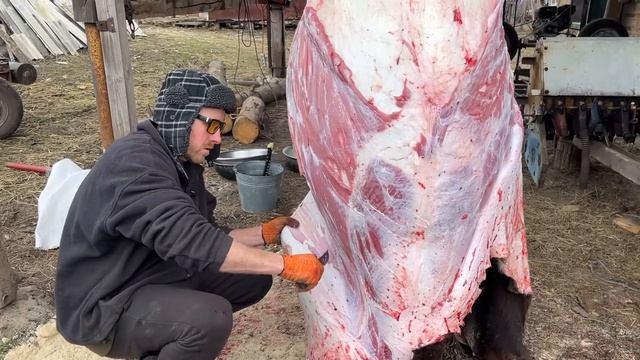 Разделка туши большого быка! Этого мяса нам хватит на