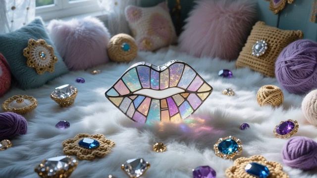 dreamina-2026-02-09-6025-полупрозрачные витражные губы в центре м...