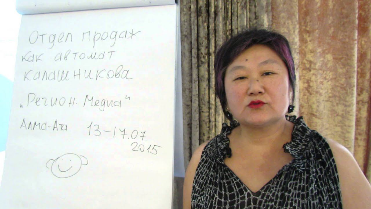 Здравствуйте, меня зовут Наталья Ацхай. Я директор филиала «Регион-Медиа» в городе Кустанай. Мне посчастливилось участвовать в замечательном семинаре, проведенном Алексеем Урванцевым. И вы знаете, самое интересное, что мне удалось почувствовать себя генералом вооруженной армии, но эта армия направлена в мирных целях, то есть не против, а за своих любимых клиентов. То есть я почувствовала, что наша задача исконная, которая наша миссия, это помочь клиенту. Не то, чтобы почувствовала, наверное, прониклась этой мыслью интересной, что для клиента мы должны были сделать все, даже, наверное, что-то невозможное. Еще, что мне очень понравилось, что меня затронуло – это работа с кадрами. То есть и кадровые конкурсы, и все относительно кадров, потому что это очень трудный момент в работе любого руководителя, и в частности, у нас, в Кустанае. Поэтому, я вам очень благодарна, Алексей, желаю вам удачи, желаю вам очень хороших и вдумчивых слушателей и, в принципе, всего самого доброго в жизни. Наталья Ацхай/«Регион-Медиа» https://youtu.be/pl8K8nOty1s