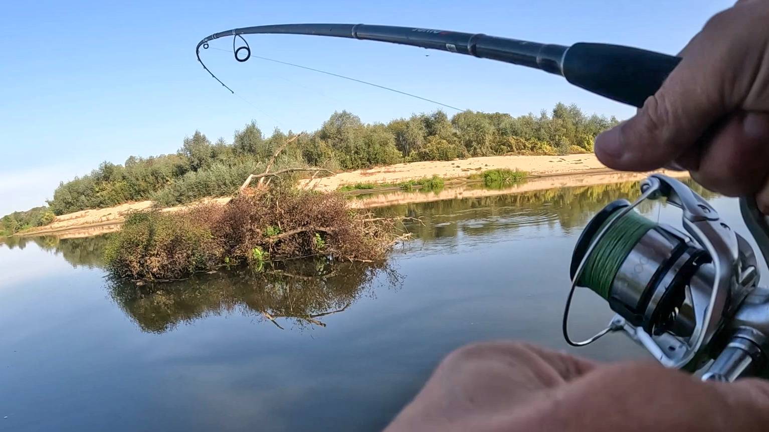 На этой рыбалке на спиннинг, я решил устроить ловлю щуки с берега на джиг (силиконовые приманки). Рыба в этот день была очень привередлива, но стоило поставить нужную приманку как поклёвки щуки и окуня, не заставляли себя долго ждать.