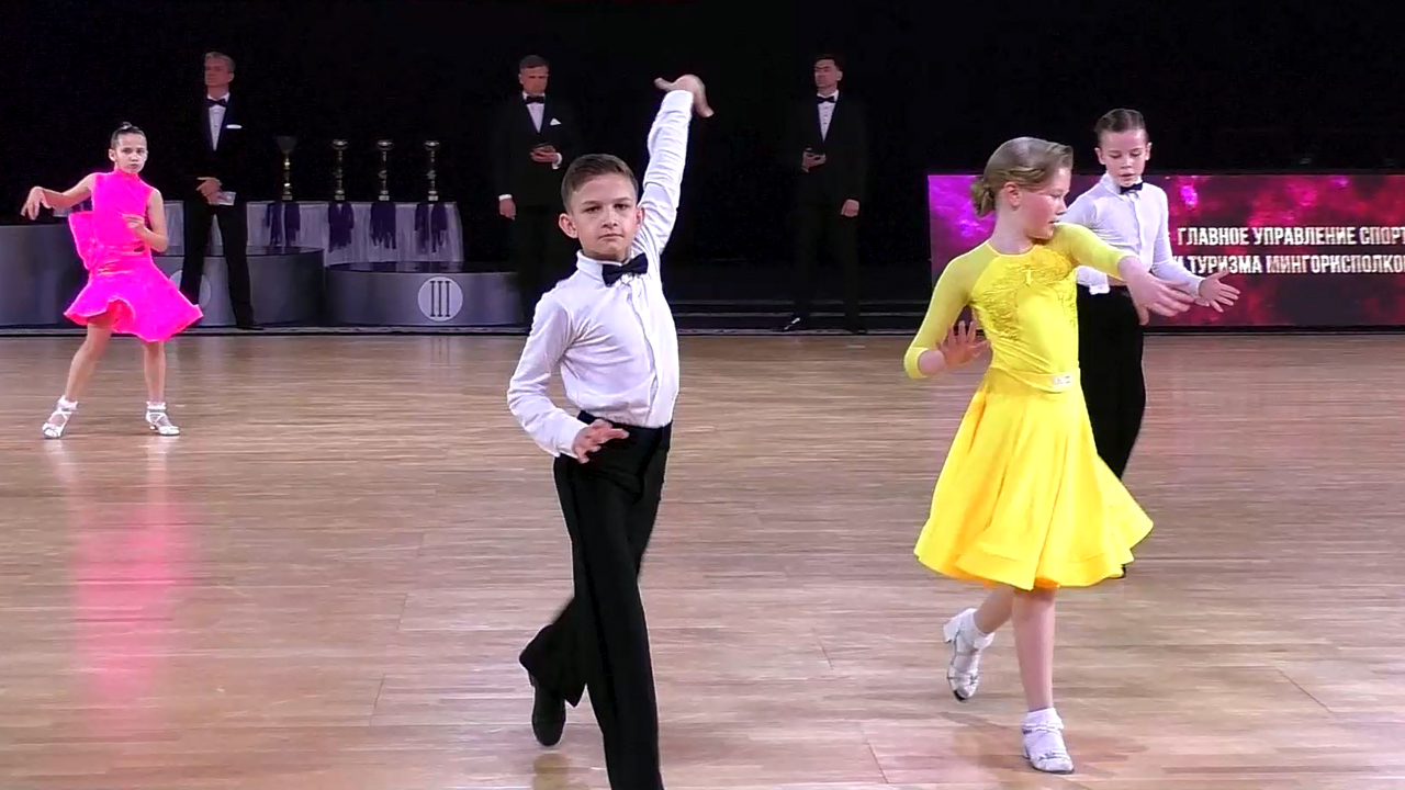 Спортивные бальные танцы. Открытый Чемпионат города Минска. Дети-2 (до 12 лет), Соло, Двоеборье (4 танца) (H класс). Финал. Минск, 27.03.2022. https://pavelfoto.net/ballroom/2022/championship-1/ 00:12 Медленный вальс 01:47 Квикстеп 03:41 Ча-ча-ча 05:49 Джайв 07:05 Результаты 1 место. 63 Новик Назар (Минск, Сигма) 2 место. 65 Карповская София (Минск, Шаг) 3 место. 205 Ефремова Ева (Лида, Феерия-Денс) 4 место. 79 Шидловский Тимофей (Минск, Аурум) 5 место. 59 Голубева София (Минск, Сигма) 6 место. 52 Кисель Константин (Минск, Танго) Чемпионат Минска по спортивным бальным танцам = https://rutube.ru/plst/176929