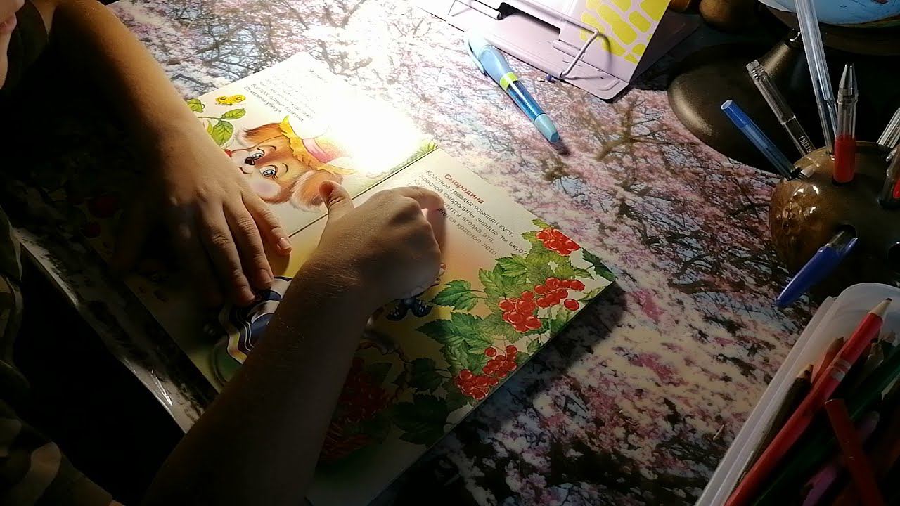 Ребенок читает по книге стихов о природе.