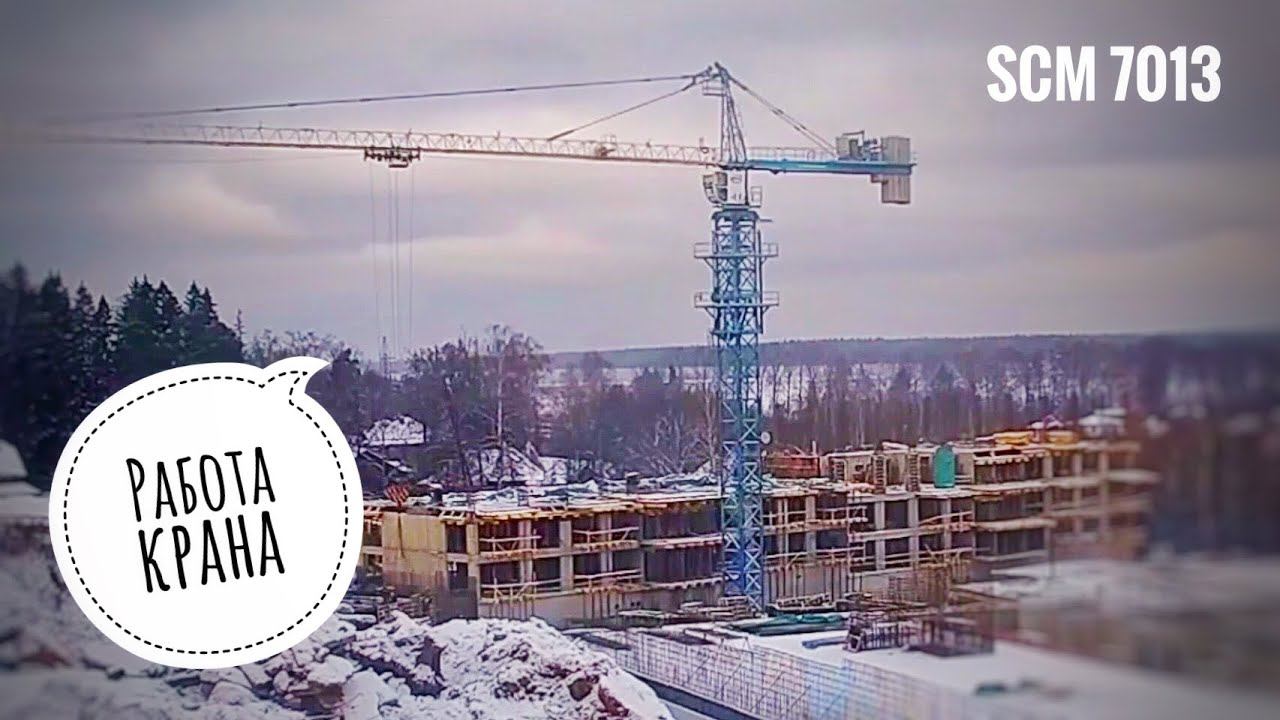 Первый снег. Рабочий день. Стройка. Башенный кран SCM. Tower crane in TimeLapse