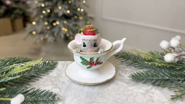 Ёлочная игрушка МЫШОНОК ЧИПСИК, серия ВЕСЁЛЫЕ МЫШАТА, полистоун, 8 см, E0964-3
