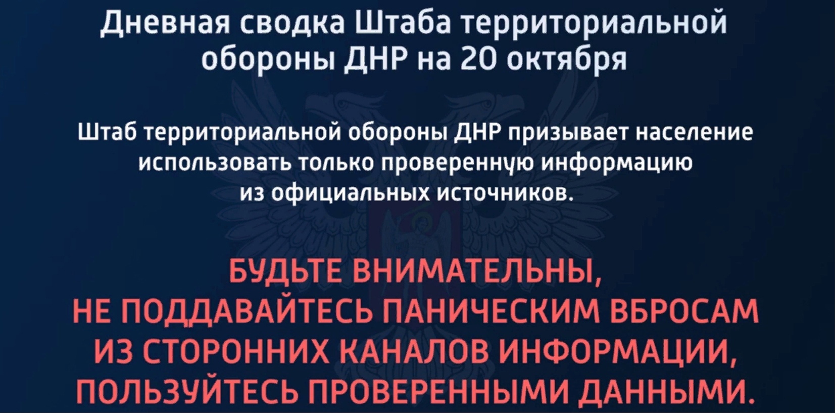 Дневная сводка Штаба территориальной обороны ДНР на 20.10.2022