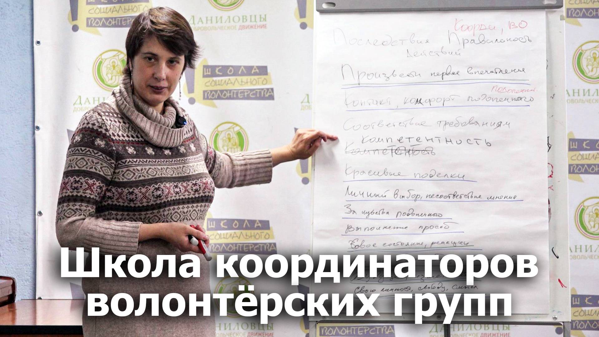 Тренинг в Школе координаторов волонтёрских групп «Границы ответственности волонтёра» http://volonter-school.ru/shkola-koordinatorov-volonterskih-grupp/. Ведущие: Лидия Алексеевская - директор Школы социального волонтёрства, психолог, гештальт-терапевт, игровой терапевт, специалист РБОО «Центр лечебной педагогики», специалист по сопровождению волонтеров Добровольческого движения «Даниловцы», разработчик системы поддержки волонтеров. Андрей Мещеринов - координатор по сопровождению волонтеров, создатель и первый координатор волонтерской группы при НИИ нейрохирургии им. Бурденко Добровольческого движения «Даниловцы». Обучение организовано Добровольческим движением «Даниловцы» http://www.danilovcy.ru/ в рамках Школы социального волонтерства http://volonter-school.ru/ при участии и поддержке Ресурсного центра «Мосволонтер» https://mosvolonter.ru/ и Союза волонтерских организаций и движений (СВОД) http://volontery.ru/ Практическая школа координаторов социального волонтёрства