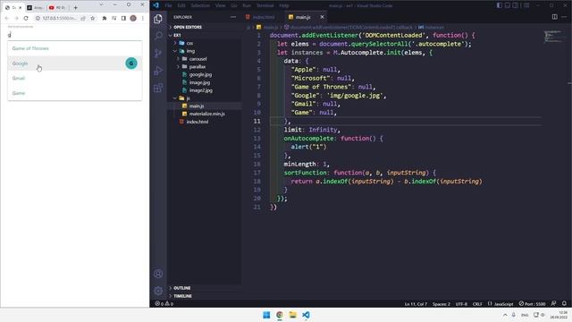 Как сделать автокомплит в поле ввода на Materialize CSS, Подробный видео курс по Materialize CSS #22