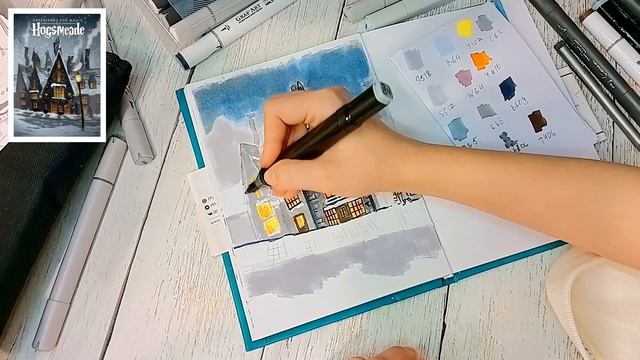 Зимний Хогсмид. Урок рисования. Рисуем маркерами. Для начинающих. Марафон вселенной Гарри Поттера.