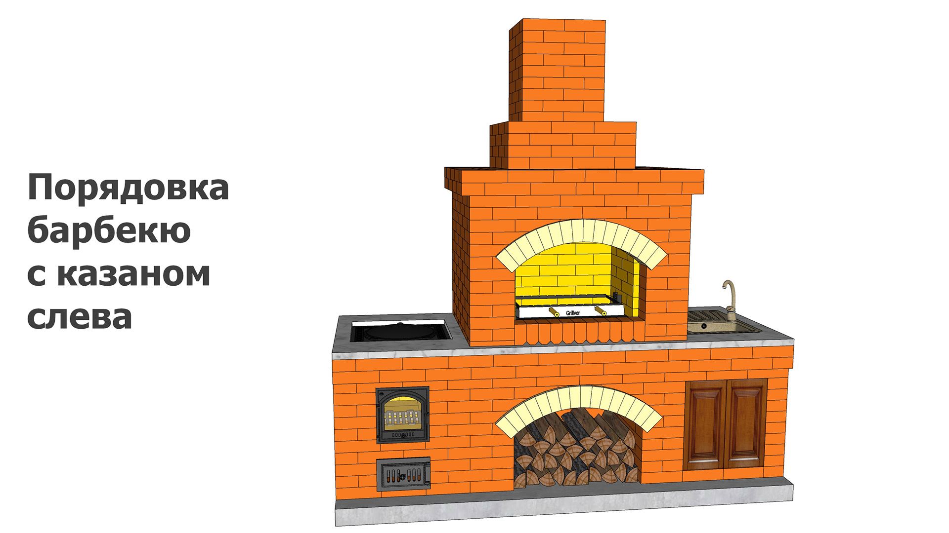Порядовка барбекю с казаном слева из кирпича