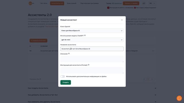 Как создать Ассистента. Раздел Ассистенты 2.0 — NeuroSpace.pro