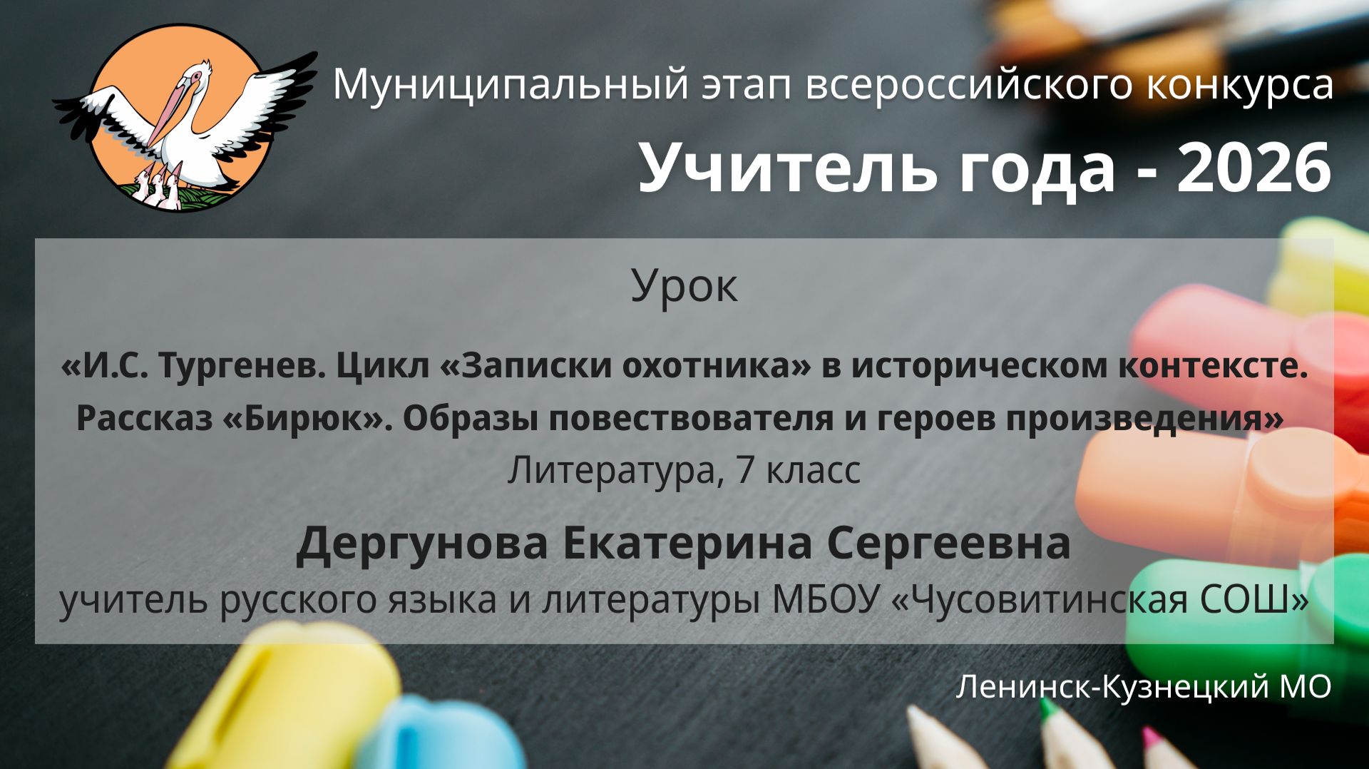 Дергунова Екатерина Сергеевна, учитель русского языка и литературы МБОУ «Чусовитинская СОШ» Литература, 7 класс. «И.С. Тургенев. Цикл «Записки охотника» в историческом контексте. Рассказ «Бирюк». Образы повествователя и героев произведения» К материалу: https://nmclk.ru/22587/k-ug_2026