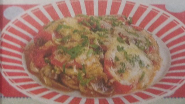 Шампиньоны с помидорами и сыром.