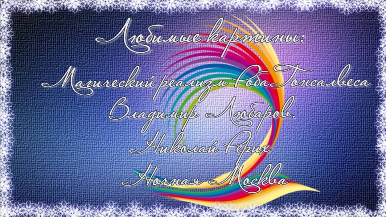 Реконструкция проекта "Четыре времени года". Проект выполнен в Adobe After Effects при поддержке МИАМ. С благодарностью Елене Золотаревой. Магический реализм Роба Гонсалвеса, В. Любаров, Н.К. Рерих, Ночная Москва.
