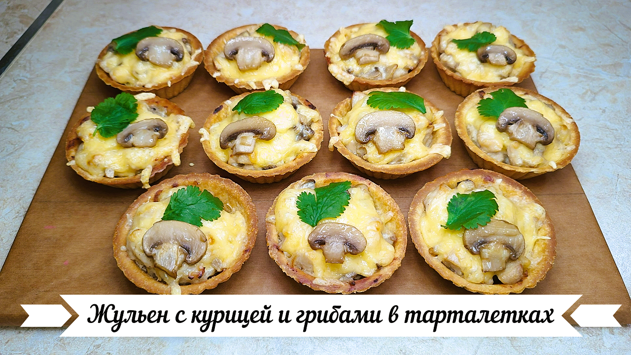 Жульен с курицей и грибами в тарталетках. ВКУСНО в горячем и холодном виде.