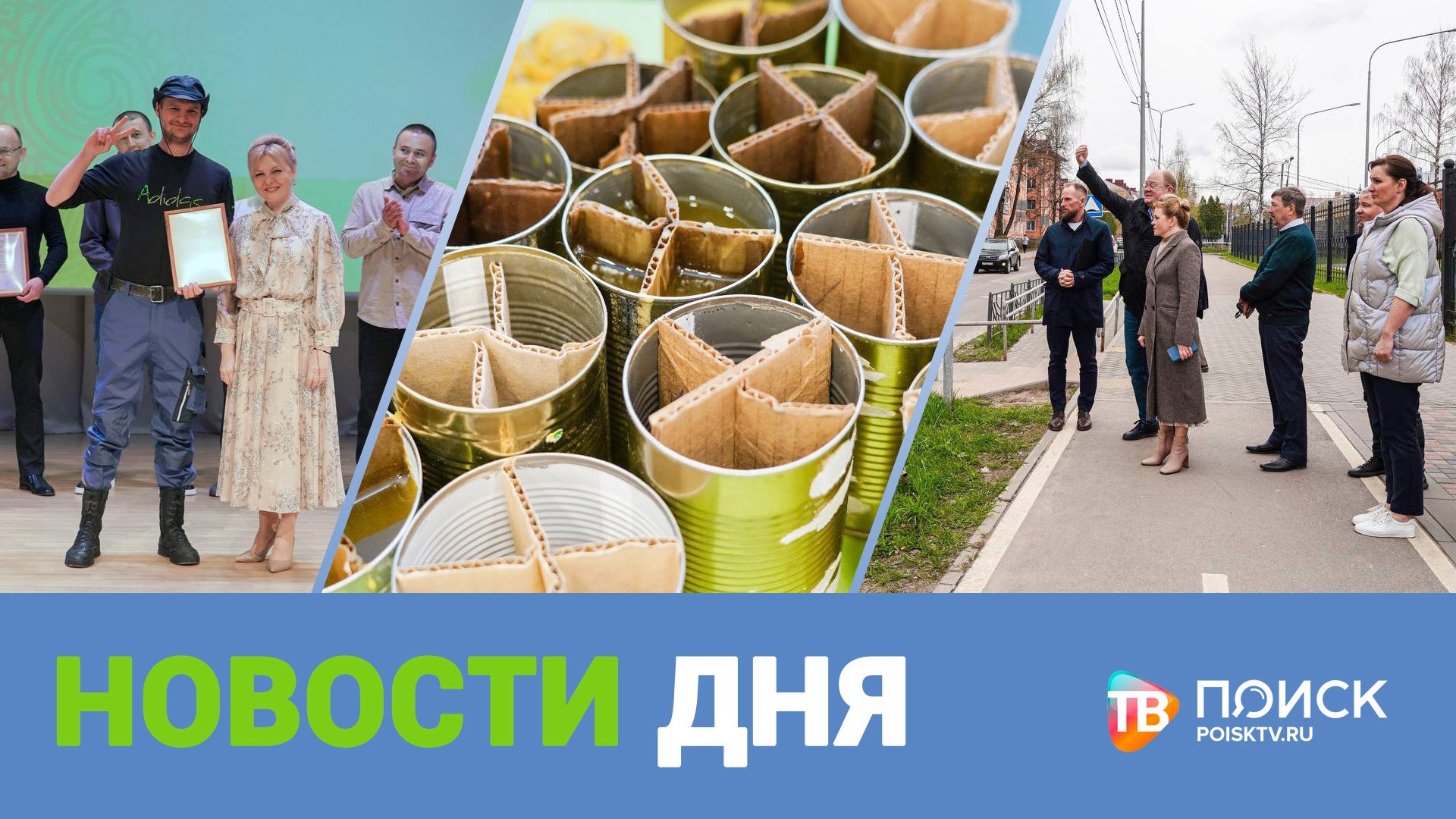 * Новое - хорошо забытое старое. В третьем микрорайоне мимо ДШИ и Сестрорецкого парка планируют запустить автобусный маршрут. * Вместо машины - шина! Особо изобретательные жители улицы Мечникова пытаются "застолбить" место на придомовой стоянке. * В Клину отметили праздник труда Подмосковья. Более 70 тружеников округа получили заслуженные грамоты и благодарности. * Школьники из Решоткина делают сухой душ и окопные свечи для бойцов СВО. Об этом и не только в программе "Новости дня" .