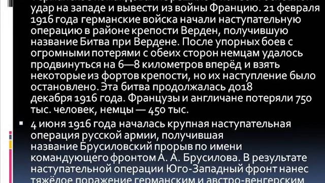 http://to-name.ru/historical-events/1-mirovaja-vojna.htm - история Первой мировой войны. На видео - лекция Светланы Борисовны Раднаевой. К.и.н., доц. каф. "Общей экономической теории и регионоведения". ФБГОУ ВПО Восточно-Сибирский гос. университет технологий и управления. Эколого-гуманитарный факультет. Институт Устойчивого развития. Содержание: 1. Причины Первой мировой войны. 2. Соотношение сил накануне войны. 3. Ход военных действий. 4. Итоги войны.