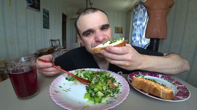 МУКБАНГ АСМР КУРИЦА ЖАРЕНАЯ / САЛАТ ОВОЩНОЙ / БУТЕРБРОДЫ EATING ASMR Mukbang 12. 07. 2023