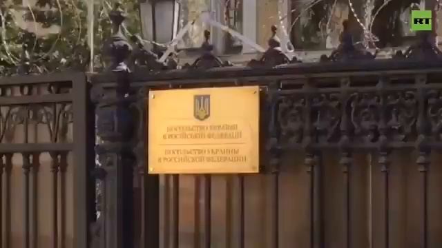 Так сейчас выглядит улица у здания посольства Украины в Москве. Догадаться к чему приурочена данная акция не сложно